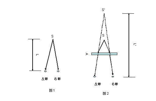 圖1,是觀眾觀察像素S,而體現景深距離L。