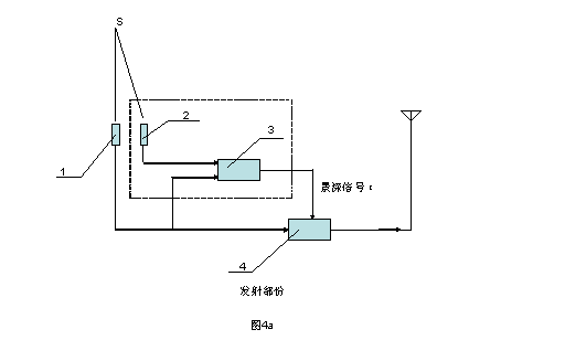 圖4a,新型立體電視系統的發射部份的框圖。其中虛線部份,即是在普通電視系統基礎上新增的部份。