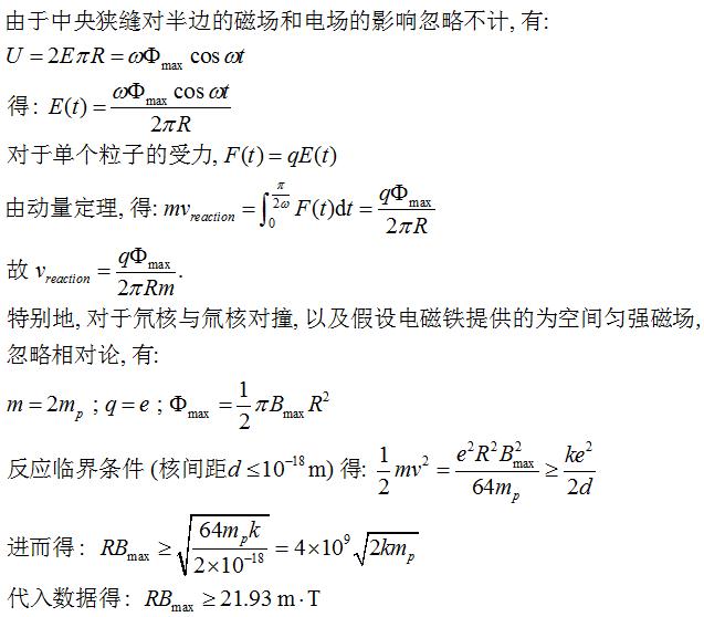 3、反應,加速1/4周后,粒子開始參與第一次反應, 與反應腔另一半入射的粒子在反應點處經磁場壓縮后對撞反應. 同時, 電場方向改變, 未反應的粒子在另一個半周繼續加速, 同時加注器補給燃料, 在另一個反應點再次參與反應. 如此循環往復, 不僅很好地利用了核燃料, 而且將反應集中在兩點, 能量的引出自然很方便。
