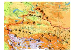冰輒沉降理論認為:山脈的形成并非板塊水平運動的結果,而是地殼區域性沉降而造成的相對上升,起決定作用的是重力作用下的地殼區域性沉降,圖2所示是新疆地形圖圖中明顯可以看出地殼垂直運動的跡象。