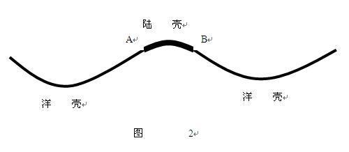 海陸的變遷一直一來是地球科學探索的重點,更是揭開現(xiàn)代地殼運動的關鍵。魏格納將海陸的分布詮釋為大陸的漂移,繼而形成了板塊構造說,后來更有海底擴張說,然最終不能將海陸變化情況完整展現(xiàn)在人們面前。本人從新的視角重新認識地殼的演化,前文已經(jīng)初步論述了《也談地殼的形成與發(fā)展》,《地殼的形成與發(fā)展———海陸的形成》,《地殼的形成與發(fā)展——板塊的定義與斷層》。本文擬將海陸變化的情況作一簡要論述。本文涉及一個概念地質(zhì)補償,所謂地質(zhì)補償是指地層斷裂的兩側巖石通過地震、滑坡等地質(zhì)事件對斷裂區(qū)域一種物質(zhì)填補過程。地質(zhì)補償是重力作用的結果,是一個銷高填低的過程,此過程不僅發(fā)生在地表同樣也發(fā)生在地下斷裂區(qū)域。冰輒沉降理論認為:地殼不是永不沉沒的諾亞方舟,更不是漂浮且有下插現(xiàn)象存在的重疊結構。它是一個以板塊為基本構造單元的剛性殼體,各構造單元以簡單的拼接組合的方式構成一個整體,以板塊間的相互支撐來維持整體的相對平衡。冰輒沉降理論認為:地殼的運動是一種常態(tài),至少就現(xiàn)階段來說是絕對的,而整體平衡是相對的。地殼的運動要受到自身的重力作用和板塊間支撐作用的雙重制約。當然板塊的大小、形狀、厚薄、起伏狀況等自身屬性同樣是板塊運動的必要條件。我們知道:地球上三分陸地七分海洋,海洋面積約占地球面積的三分之二;我們再看地殼的厚度:大陸地殼厚度較大,平均約為33千米。高山、高原地區(qū)地殼更厚,最高可達70千米;平原、盆地地殼相對較薄。大洋地殼則遠比大陸地殼薄,厚度只有幾千米。http://baike.baidu.com/view/65376.htm,以此我們不難作出地殼的模型,下面是拉伸的地殼。說明:陸殼、洋殼是相互對接在一起的,可以這樣認為A、B兩點同時固定了陸殼和洋殼。從圖1我們不難看出陸殼厚重而狹窄,洋殼單薄而廣闊,這就造成了陸殼和洋殼自身重力作用下的不同運動。重力作用下洋殼中心沉降表現(xiàn)更為突出,而陸殼由于重而狹窄中心沉降表現(xiàn)相對較弱,其受力更多表現(xiàn)為洋殼中心沉降的牽拉。又因為洋殼陸殼相對比較穩(wěn)定,所以其破裂帶主要位于板塊交界地帶。