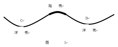 冰輒理論認為:大洋地殼中心沉降的過程中,不僅表現(xiàn)為對于板塊交界地帶的撕裂同時洋殼的中心部位C、D區(qū)域也會出現(xiàn)倒V字形的斷裂如圖3所示,當然在于大洋的中心初期形成地殼斷裂的短時期內(nèi)火山就會迅猛爆發(fā),所以我們所能見到的只能是大洋的中脊,實質(zhì)上大洋地殼的底層是一個倒V字形的大斷裂,這也是大洋中脊火山頻繁爆發(fā)的主要原因。