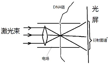 概要:在電場的作用下,拉直的單鏈DNA通過納米孔道,以超細高頻脈沖激光束在一側進行照射,另一側以光屏接收衍射光,利用計算機分析檢測到的衍射圖樣,與儲存的脫氧核苷酸衍射圖樣比對,進而得出基因圖譜。