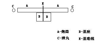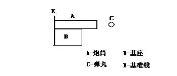 設:A—炮筒;B—基座;C—彈丸;E—基準線。