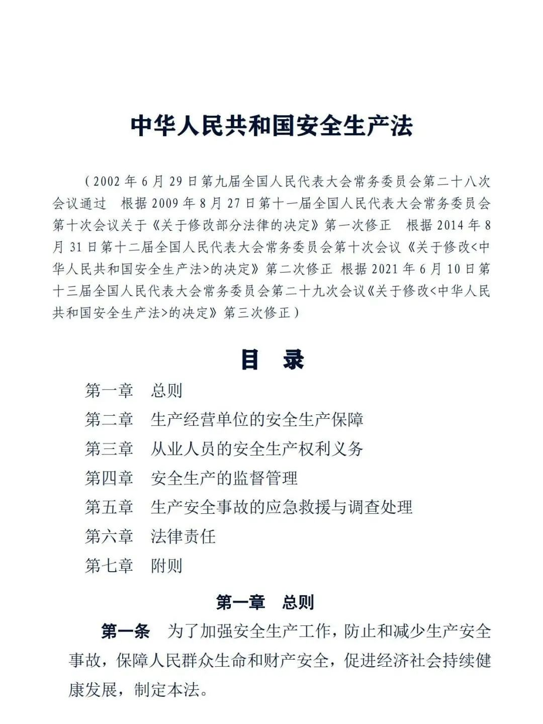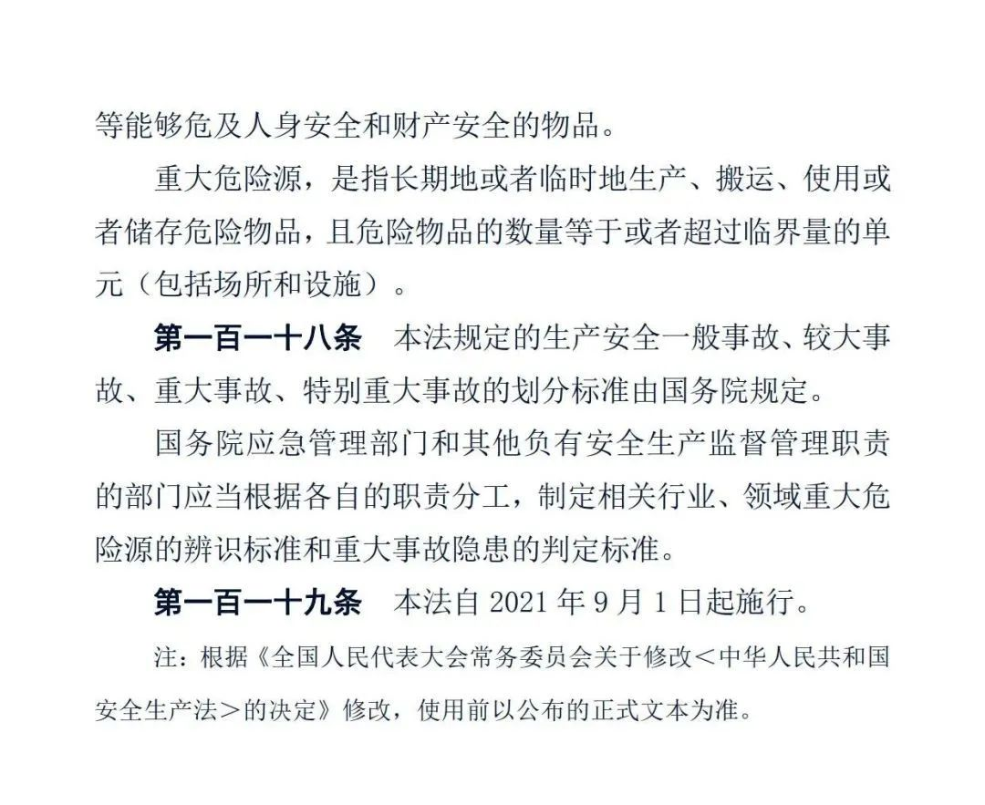 - 正式版《中華人民共和國安全生產法》