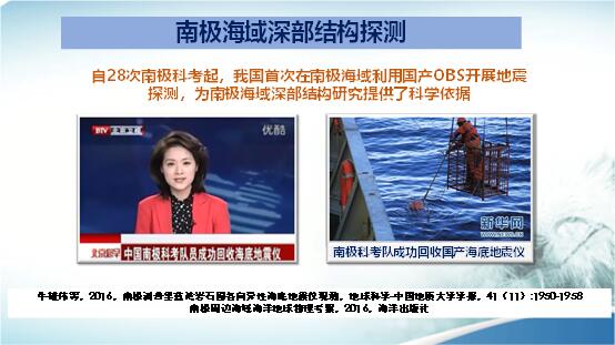 在南極地區,我國有二處陸上地震臺站。在第28次南極科考時投放了海底地震儀,過了一年,在第29次南極科考船去那片海域回收時,因那片海域結冰,沒法回收。根據設計,海底地震儀最大留海時間為一年,大家都擔心失掉這兩臺儀器了??上驳氖?,又過了一年那片海域已經沒有冰了,在回收時,海底地震儀竟然浮到海面,這是在海底記錄時間最長的一次試驗。也為南極海域深部結構研究提供了科學依據。