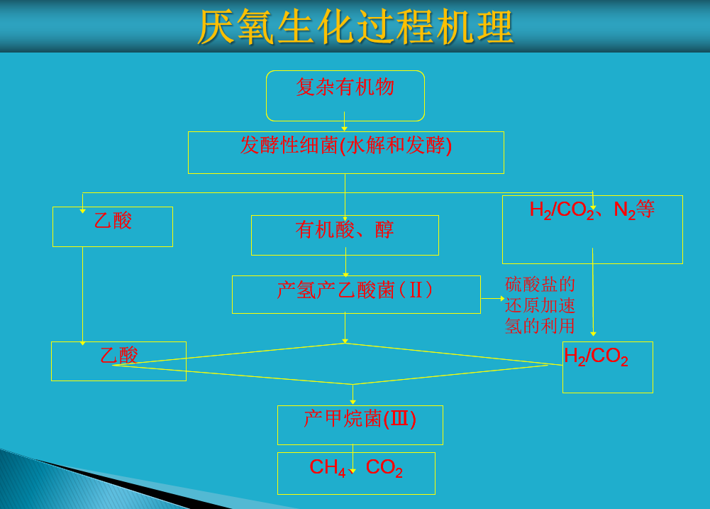 硫酸鹽還原階段;含氮/硫有機廢水首先進行硫酸鹽還原反應,在硫酸鹽還原菌和產甲烷菌的作用下,完成硫酸鹽還原和大部分COD的去除;