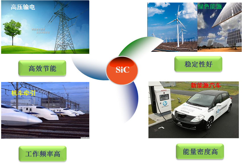 以碳化硅(SiC)為代表的寬禁帶半導體大功率器件是目前在電力電子領域發展最快的新型半導體功率器件。碳化硅器件在高壓直流輸電,以及綠色能源,機車牽引高鐵,新能源汽車方面有很好的應用潛力。應用于高壓直流輸電領域,具有高效節能的特點。在綠色能源方面,碳化硅本身的可靠性和穩定性比較好,適合在苛刻的環境里面使用。在機車牽引領域,用碳化硅MOSFET取代硅IGBT,可提高工作頻率。碳化硅也非常適合應用于電動汽車以及混動汽車,因為用它做出來的PCU的體積小,效率高,可提高電動汽車的能量利用效率。
